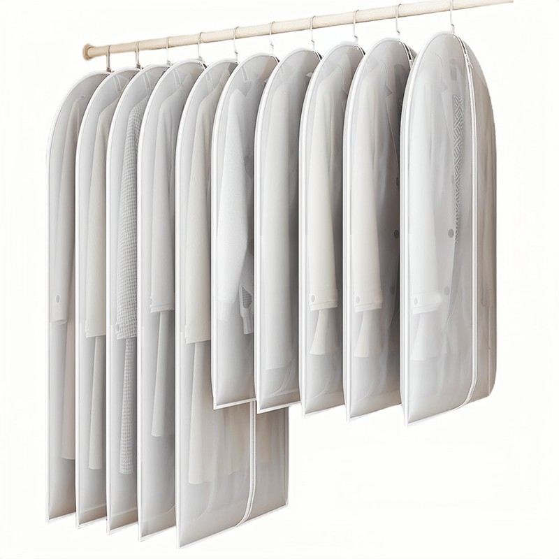 - These coat covers for closet adopts the thickening process, which is generally more than 30% thicker than other transparent coat bags. The PEVA material is elastic and breathable which has very good dustproof and moisture-proof effect.