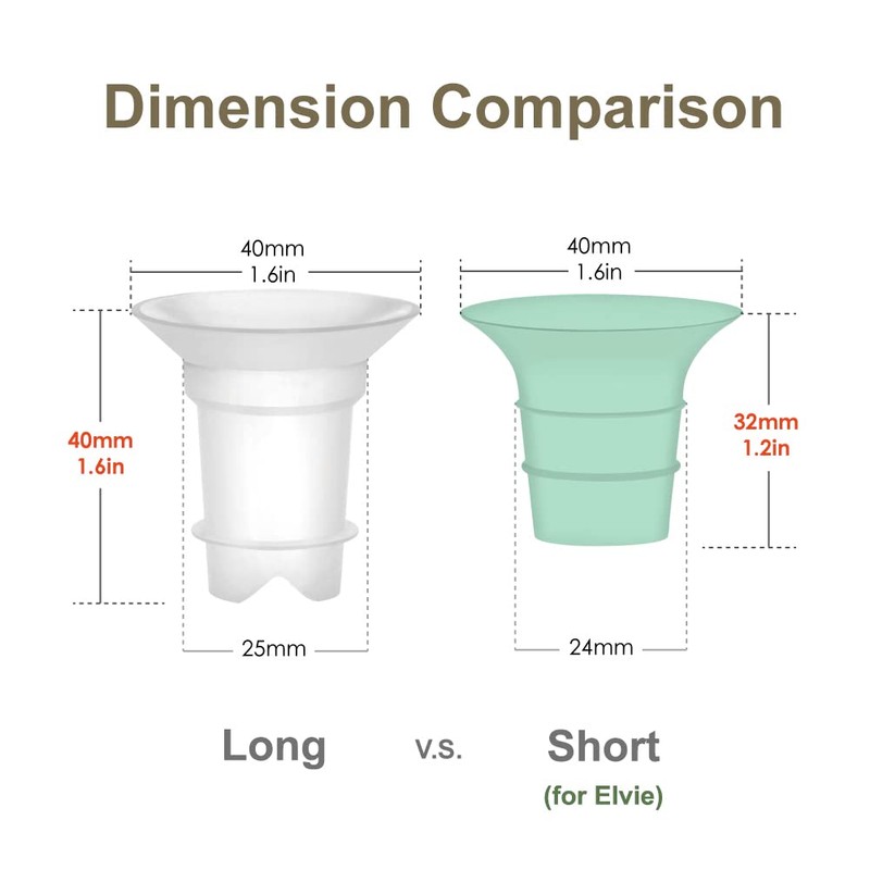 - Compatible con el extractor de leche portátil Elvie y Motif Luna y Amada Mya y Mya Pro brida de 24 mm, pero no Mya Joy. Nota: Debido a que la identificación del eje de brida Motif Luna y Ameda Mya es más pequeña, necesitarás un poco de fuerza adicional para instalar/quitar los insertos de Maymom dentro y fuera del eje.
