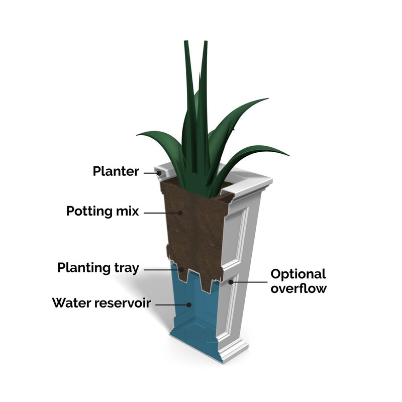 - Features a Water Reservoir: This Fairfield Tall Planter comes with a built-in water reservoir that provides your plants with a consistent source of moisture and allows you to water your plants less often