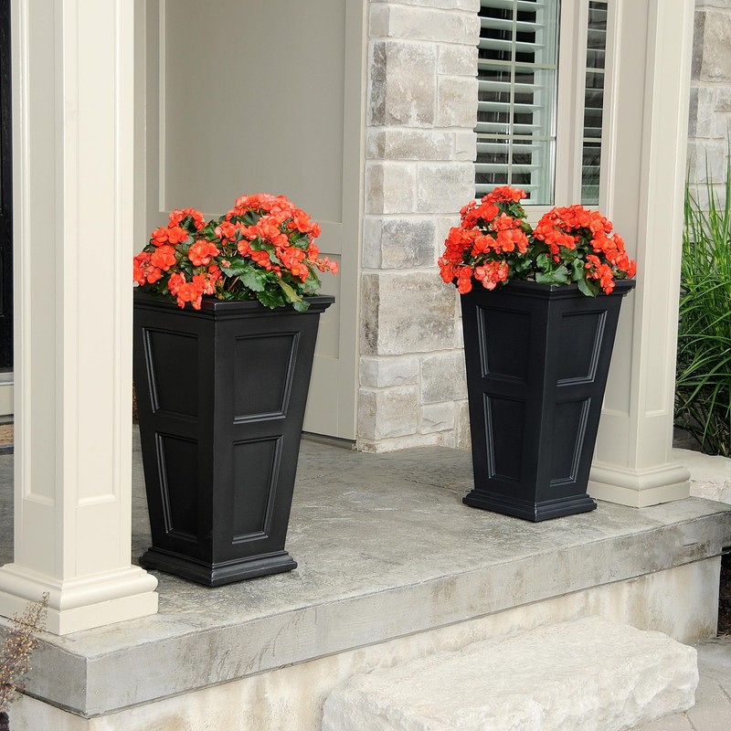 Mayne Fairfield 28in Tall Planter 2Pack - Black - 16in L x 16in W x 28.3in H - Polyethylene - Built-in Water Reservoir (7847-B)