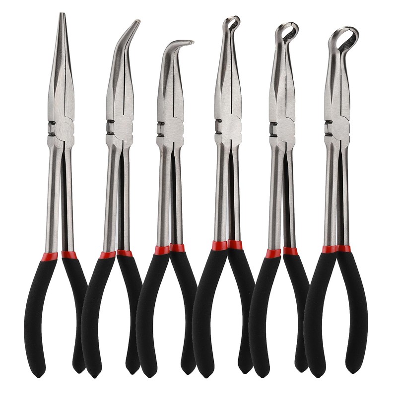 Mayouko 6PCS 11" Extra Long Reach Pliers Set, Straight Nose Pliers, 45°Bent Nose Pliers, 90°Bent Nose Pliers, 5/16", 1/2" and 3/4" Circle Nose Pliers, Extra Long Reach Pliers Set
