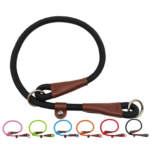 - The rope slip/choke dog collar are made of the highest quality nylon materials with leather tailor connection. This dog training collar is solid and easy to slip on and off.