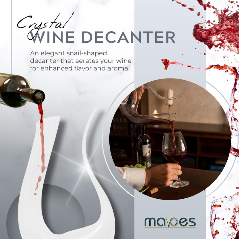 Maypes Luxurious U-Shaped Wine Decanter – Elegant Red Wine Aerator Carafe – 1500ml Capacity Decanter Wine Made of Non-Lead Crystal Glass – Easy to Use Crystal Decanter for Red, White, Rose Wine