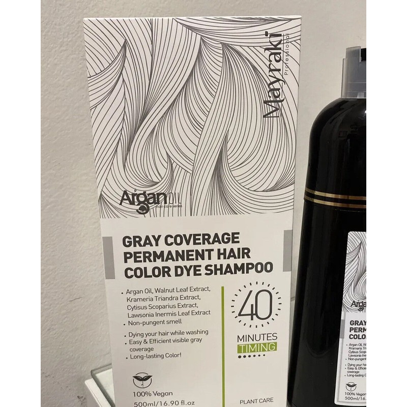 Mayraki Professional, Gray Coverage Permanent Hair Color Dye Shampoo 16.90fl Oz. Here's a Gray Coverage Hair Dye for A Youthful Look. No More Silver Hair. Perfect Hair Color for Gray Hair Coverage. Mayraki Gray Coverage Permanent Hair Color Dye Shampoo – a permanent gray coverage hair dye shampoo that does everything in one go. It’s a combination of a shampoo and a hair coloring treatment in one. Made from natural essences that effectively color the hair while smoothing it at the same time. No need for a brush and bowl. Just lather it in your hair, wait for 15-30 minutes, then rinse. Argan Oil. This ingredient is made from the fresh kernels of the fruit of the Argan tree in Morocco. The argan oil itself has been used for centuries for cooking and as a home remedy for health and beauty, including hair loss. It's high in antioxidants, essential fatty acids, and vitamin E, which is why it helps to hydrate and soften hair. It is easily absorbed by the hair cuticles, nourishing dry hair and making hair shine with health and radiance. When this key ingredient is used in the coloring process, it penetrates the hair at the cortex level, giving profound benefits during and after the hair color process. Argan oil is also rich in nutrients and phytochemicals that can revitalize color-treated and processed hair. When all its nutrients and minerals penetrate the scalp, it will help promote healthy hair growth too.