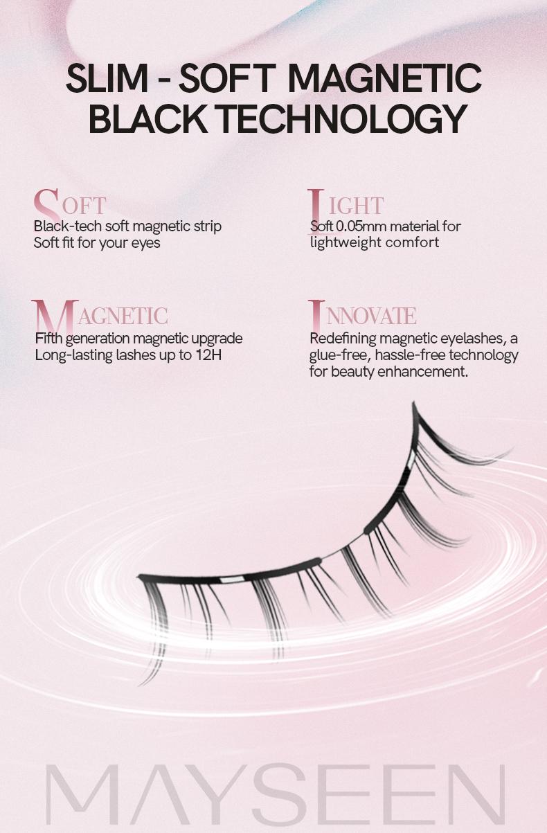 MAYSEEN FINCH BLACK Soft Magnetic Eyelashes, Eyelash Extensions with Applicator Kit, Reusable Magnetic Lashes, Glue-free, Waterproof, Lightweight, Soft Magnetic Strip, Natural Makeup , with Free Gifts: Eyelash Curler & Lash Setting Liquid, New Year Gift