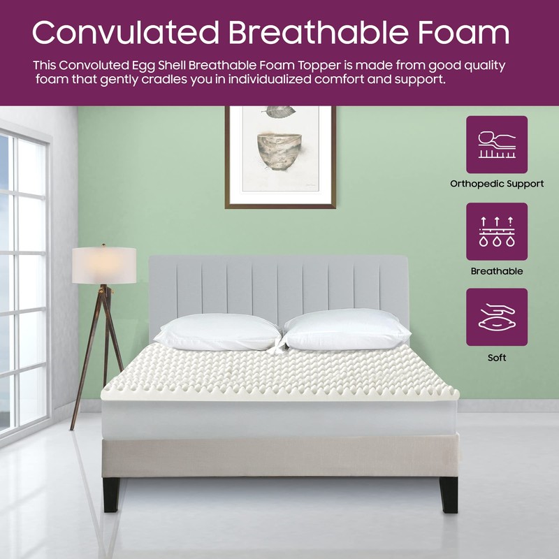 - Pressure relief: The convoluted design of the foam helps to distribute weight evenly, which can help reduce pressure points on the body. This can be particularly helpful for people who suffer from joint pain or other conditions that make it difficult to get comfortable in bed.