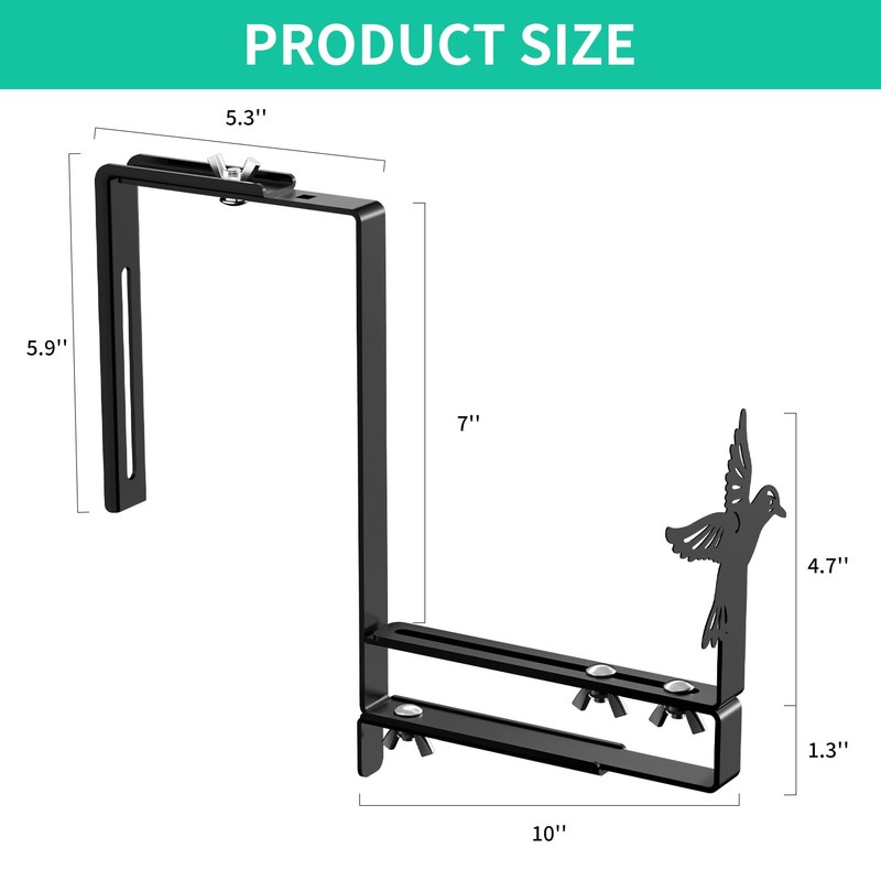 - 【Anti-Shaking Design】: We have researched numerous hanging brackets on the market and discovered that many customers struggle with pots tilting when they're too heavy or when railings are too thin. That's why we've added an adjustable support bar at the bottom to prevent this issue. You can easily adjust this part to prevent flower pots from falling.