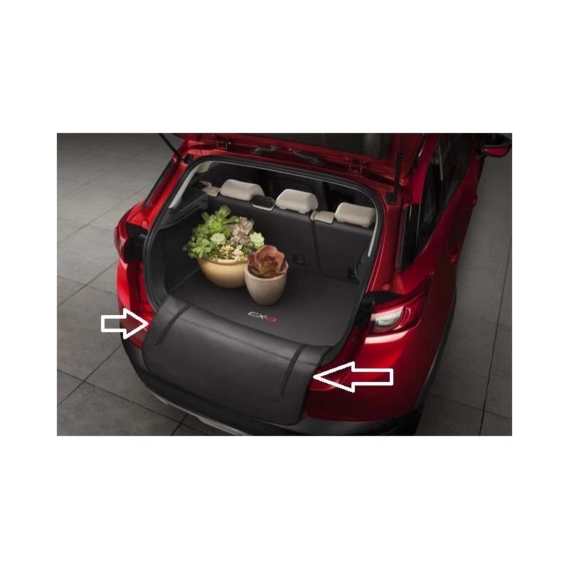 Mazda CX-3 Soft Cargo Liner. Designed to work with the rear seats folded, upright or split, the Soft Cargo Liner provides added protection no matter what mode you are in. Protects cargo area and seat backs. Works with seats in any configuration. Includes bumper flap for additional protection during loading and unloading.