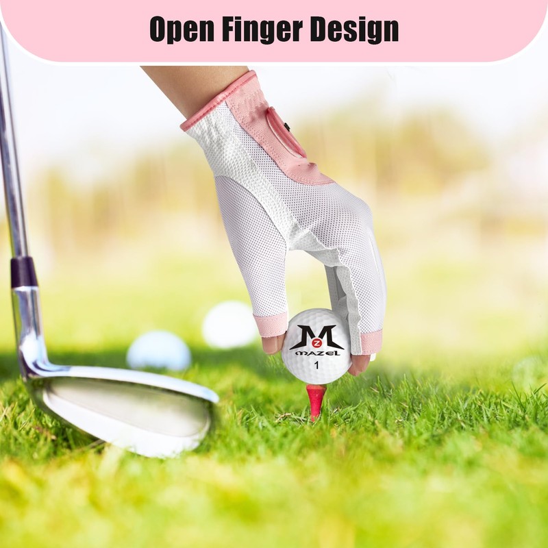 MAZEL Golf Gloves Women One Pair S M L XL, Open Fingers for Easy Touch Screen, Left Right Hand Leather Ladies Gloves Small Medium Large Extra Large (Pink Pair, L)