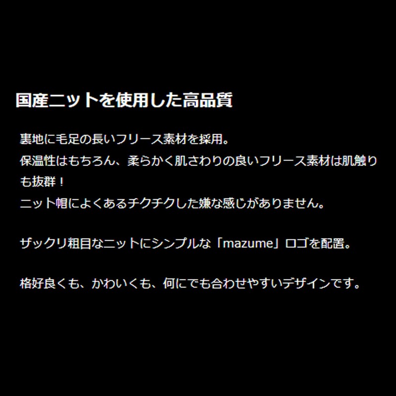 - A simple "mazume" logo is placed on the rough knit