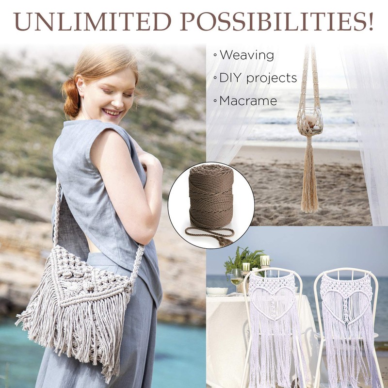 The art of macrame is a creative way to make projects for home decor, wardrobe or beautiful handmade gifts. The slight twist gives less tendency to knotting and allows quick unscrewing for fringes. Perfect for large macrame projects with boho look or for knitting and crocheting with natural boho look.