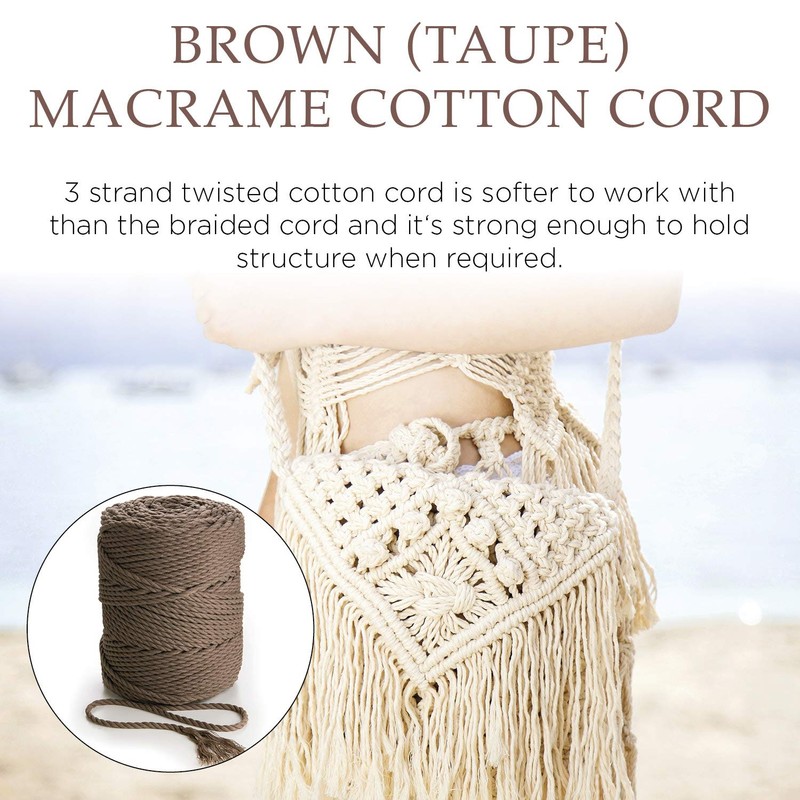 - Fantastically versatile 3-layer macramé rope. The three-layer twisted composition of high-quality soft cotton fibres makes the rope stronger and thicker than a cord. Although durable enough for larger projects such as a wall hanging or tote bag, it is equally ideal for consistency in different knotting techniques.