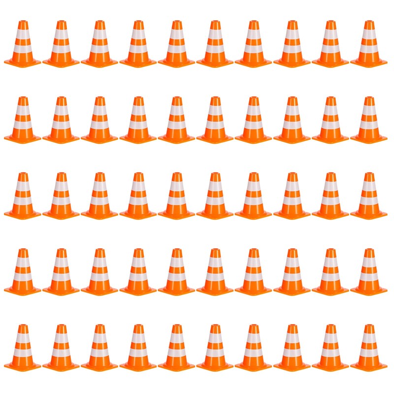 MBAIYO 50Pcs Mini Traffic Cones,Plastic Miniature Traffic Cones Vehicles Scene Road Block Pyramid Small Transportation Pylons for Street Signs Training Multi-Purpose Construction Theme Party
