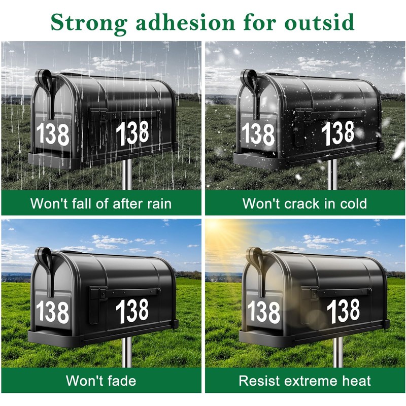 - 【Reflective Design】 These mailbox numbers reflective stickers utilize light-reflecting technology to create 500% brighter visibility than standard decals. reflective house numbers remain legible during rain/fog conditions, ensuring emergency responders and delivery personnel can locate addresses effortlessly