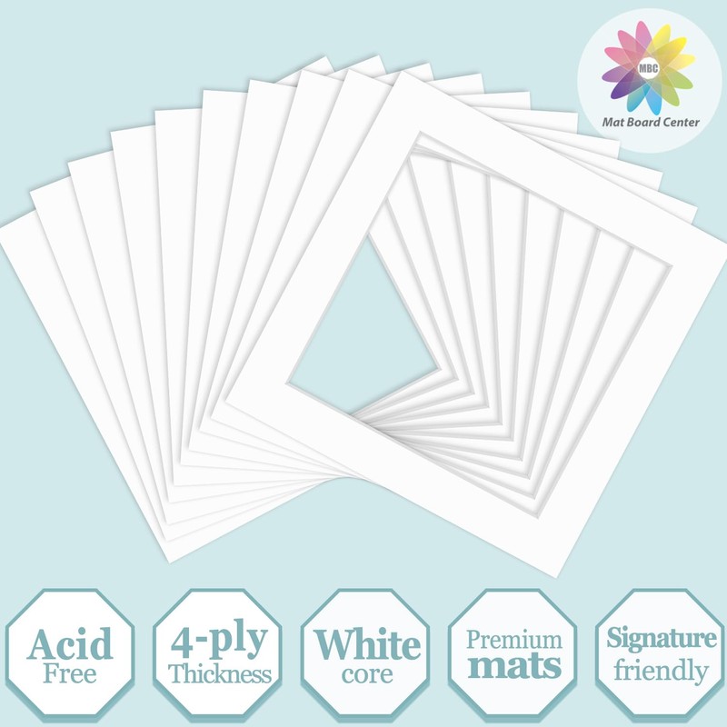 MBC Mat Board Center, 10 Pack 10x10 for 8x8 White Picture Mats Frame Mattes, Bevel Cut, Acid Free, 4-ply Thickness