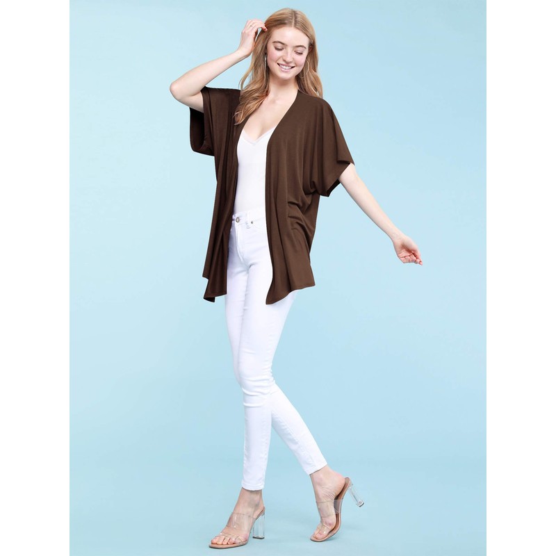 MBJ Women's Kimono Style Short Sleeve Dolman Cardigan – Lightweight Open Front Summer Cover-Up S Brown