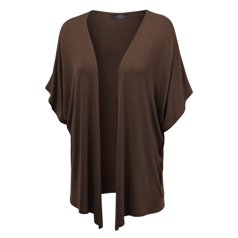 MBJ Women's Kimono Style Short Sleeve Dolman Cardigan – Lightweight Open Front Summer Cover-Up S Brown
