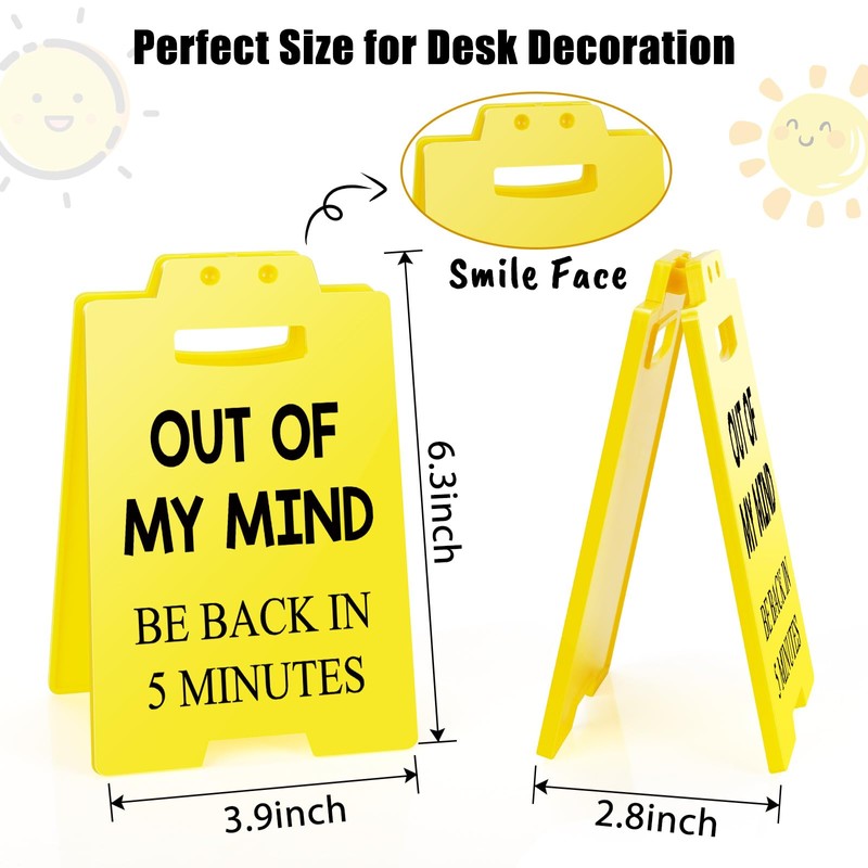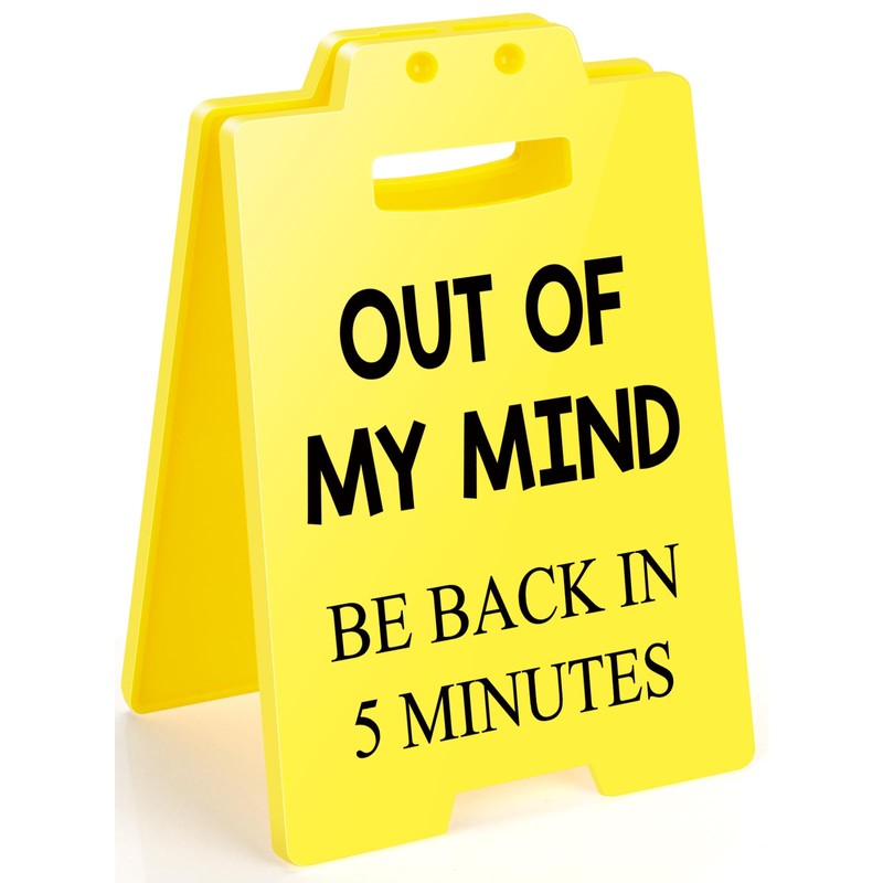 MBL Funny Office Desk Sign - Out of My Mind Be Back in 5 Minutes, Small Fun Gag Cubicle Decor Gifts for Team Coworker Teammate Employee Hr