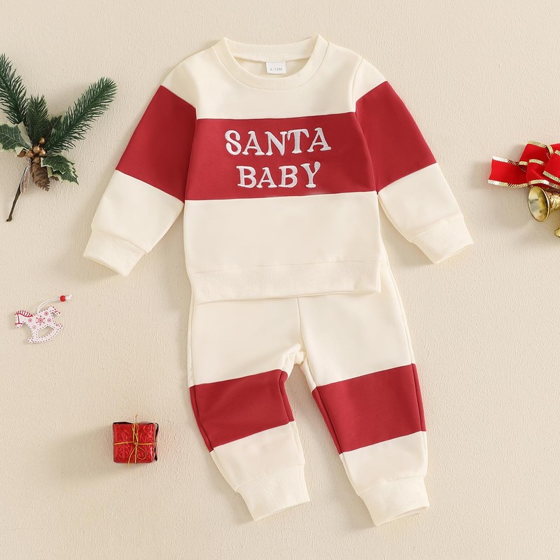 - CASUAL DESIGN: Christmas baby outfit, warm and cozy; Boy sweatshirt with letter embroidery, contrast color, round neck and long sleeve design; Baby boy pants with elastic waist design to ensure a comfortable fit, perfect for fall wear
