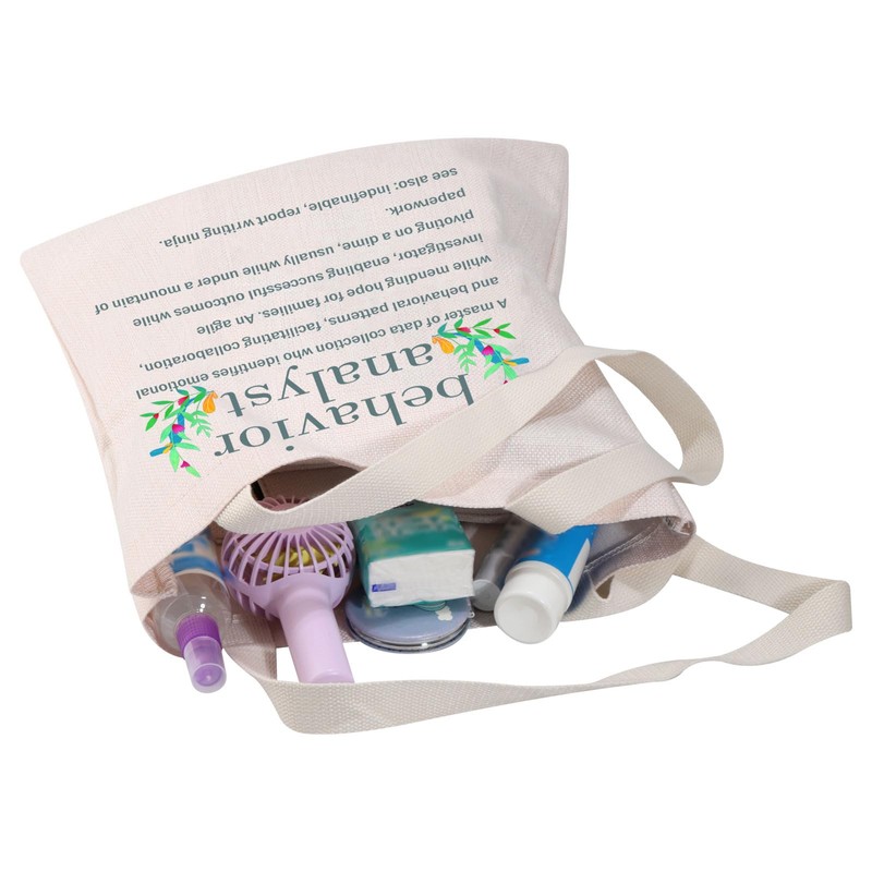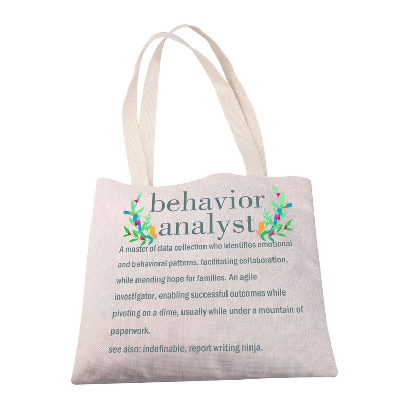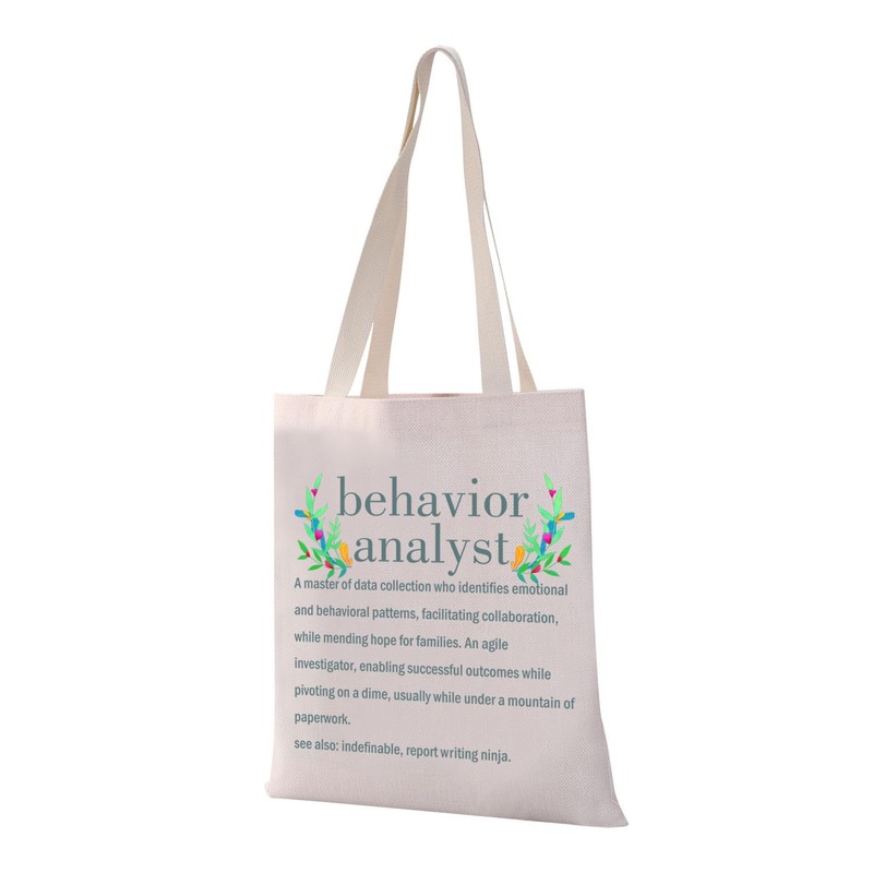 - This inspired utility Behavior Analyst tote bag makes life so much easier and convenient, suitable for office, shopping, appointments, weekenders, party, library, dorms, everyday errands, travel bags, vacation etc. The reusable grocery tote bags don't just carry books,you can put all kinds of stuff in them, perfect for everyday use.