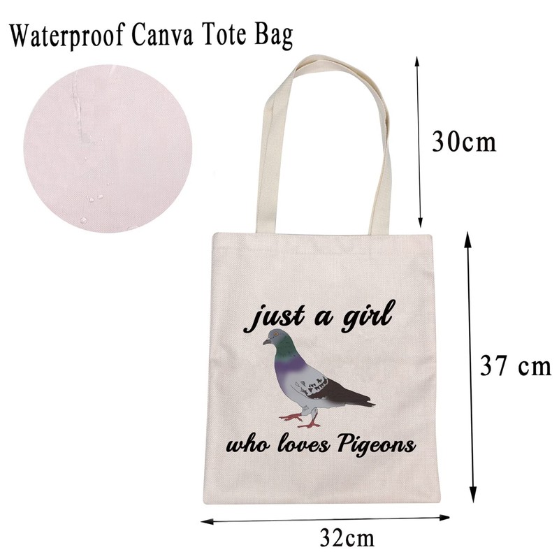 - Just a girl who loves Pigeons tote bags fashioned with comfortable, long handles allowing for easy carry can be used as shopping bags, Eco-Friendly bags, book bags, school bags, grocery bags, lunch bags, outdoor bags, or even a gift bag, etc.