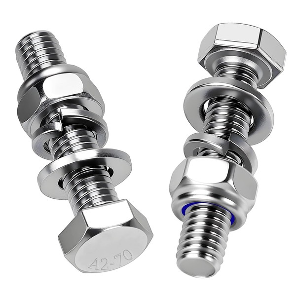 - Safe against loosening: Mbsomnus hexagonal screws M8 x 35 mm are self-locking with stainless steel nut with nylon rings to prevent loosening due to vibrations or external influences. Mbsomnus washers and spring rings also increase the stability of the connection.