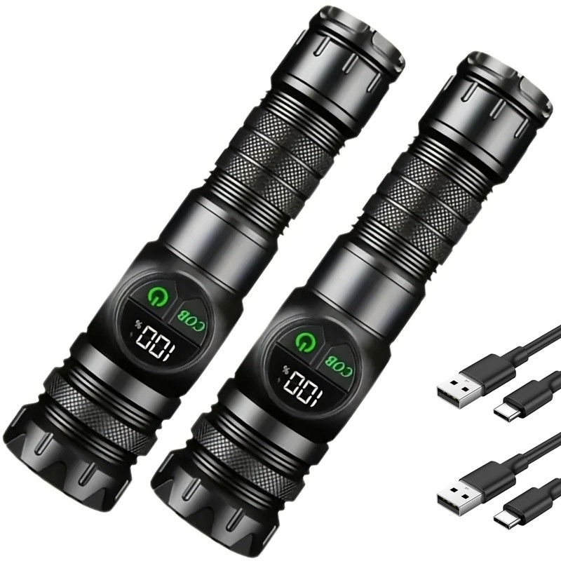 MC-ELIN Rechargeable Flashlights High Lumens 10000 Long Distance, Super Bright LED Flash Light Long Lasting USB C LCD Display, Double Light Source Flashlight for Camping Hiking Emergency (2)
