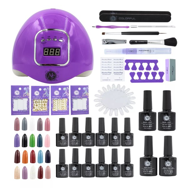 Mc Nails Colorful Kit Uñas Gel Todo En Uno Lámpara + 20 Geles, 52pzs