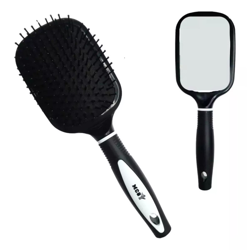 MC8 3 Cepillo Desenredante Cuadrado Raqueta Con Espejo Trasero