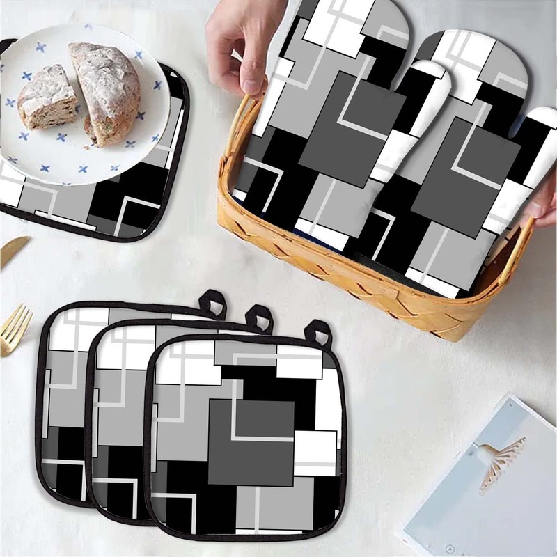 - Space-Saving: The set of 2 oven gloves and 3 pot covers is an essential kitchen accessory for barbecue and cooking needs. It is designed to save space and protect the table from any damages.