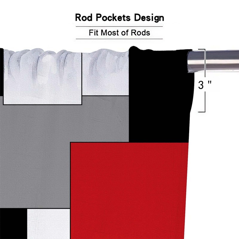 MCALK Red Kitchen Curtains Tiers and Valances Set 3 Piece for Windows Grey and Black Kitchen Window Curtains Set,White Modern Abstract Art Valances for Living Room(36" Tiers Set)