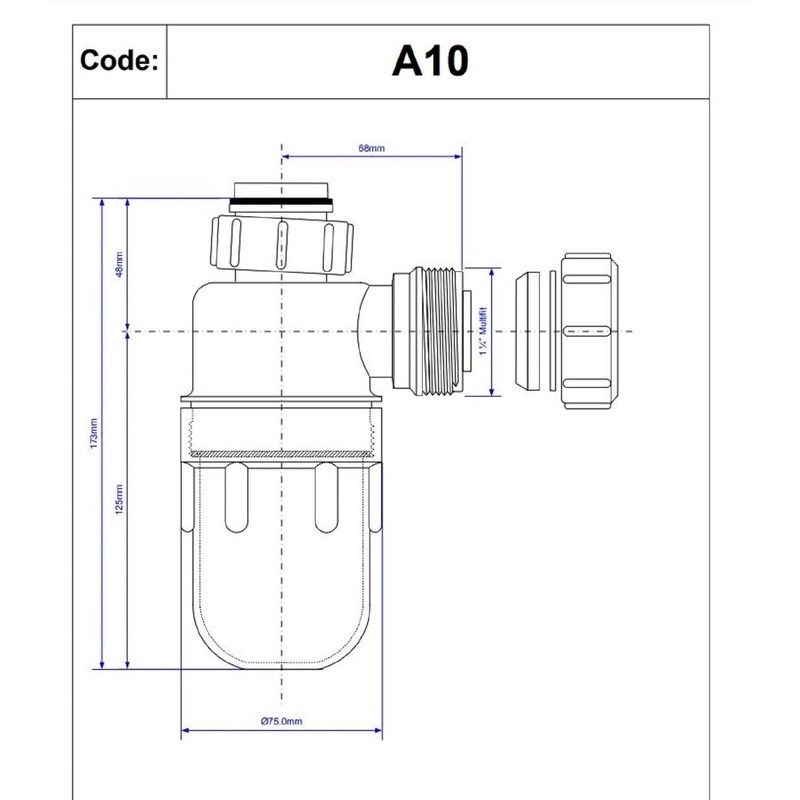 McAlpine A10 11/4 inch x 75mm Water Seal Bottle Trap with Multifit Outlet, White