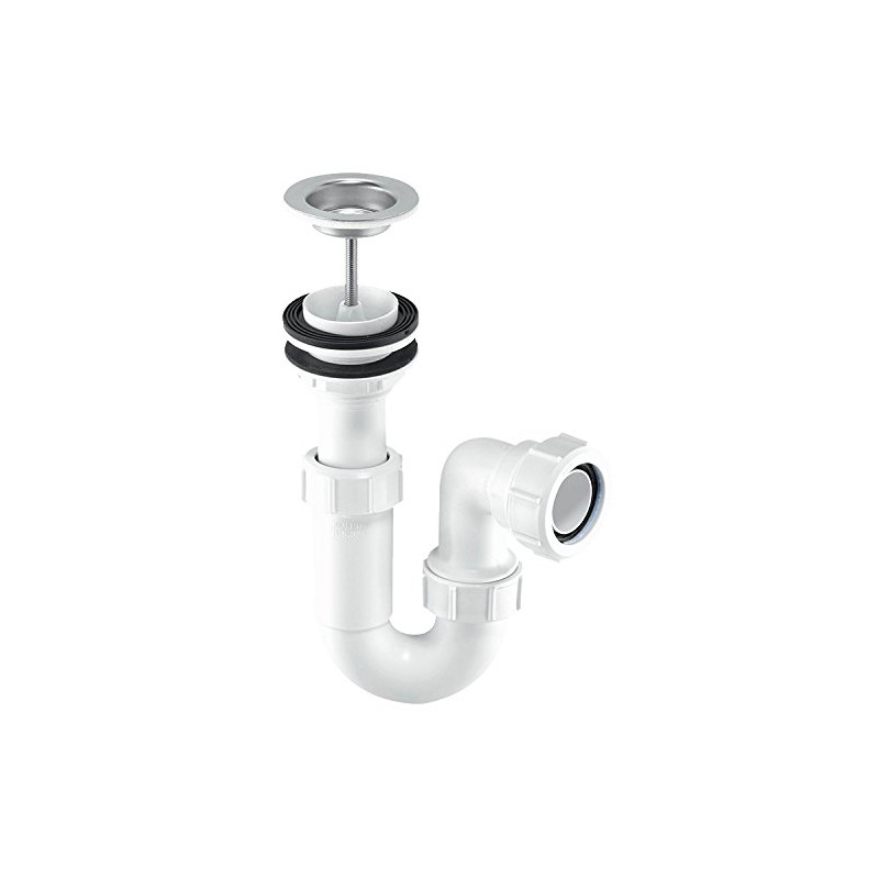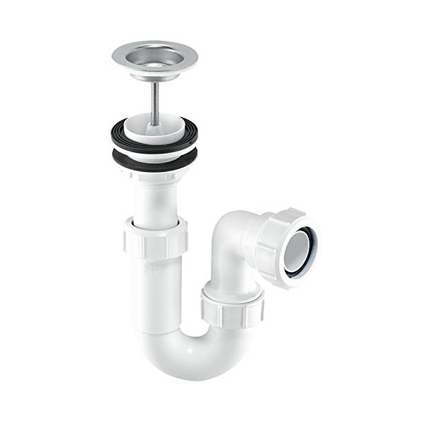 McAlpine ASA10W Adjustable Inlet Basin Trap with Centre Pin Waste, White and Chrome