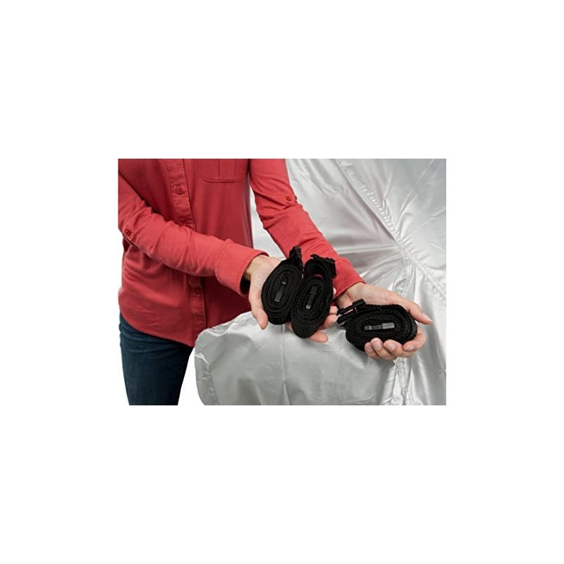 - Kit includes: easy-fill storage bag with carry handles, 3 quick-clip wind straps (front, middle and rear) that snug with a tug, vinyl-coated, anti-theft cable with steel padlock, sharkfin antenna protection strip, antenna grommet kit.