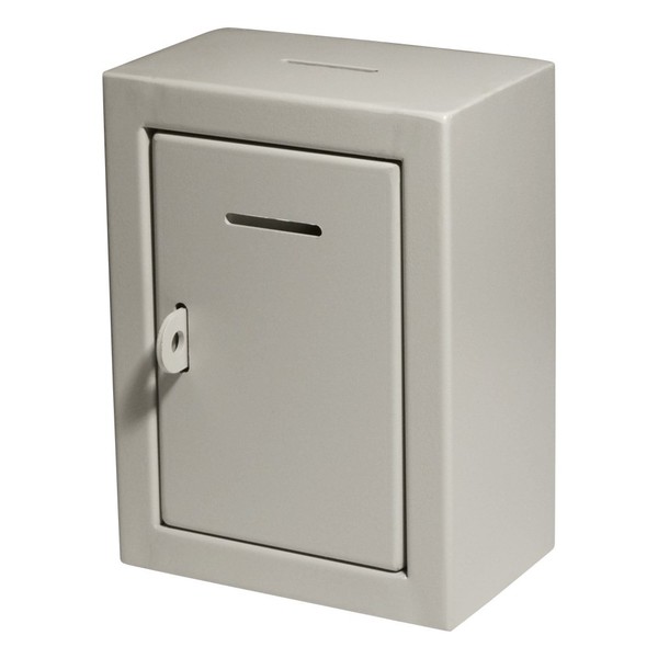 Metal Charity Collection Box Secure with Slot & Wall Mount - 8.5x6.5x4" Drop Box for Home and Office (White)