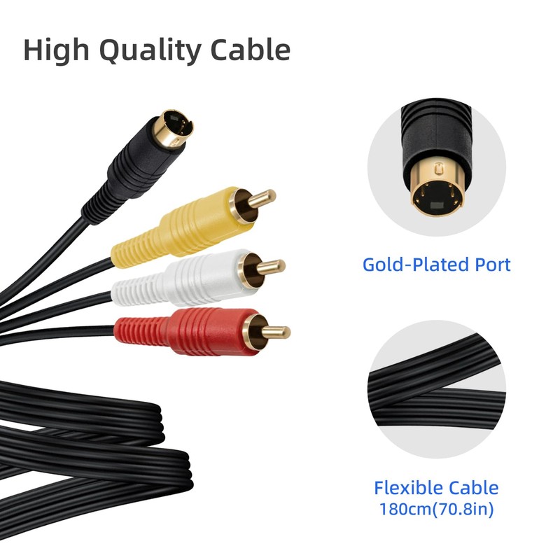 - Brand new and high quality. Gold plated professional cable combines S-Video and RCA connectors.
