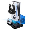 Mcbazel PS5 Kühlung ladestation PS 5 ständer vertikal Kühlständer Headset-Halterung LED-Anzeige Disc-Aufbewahrungsschlitzen PS 5 UHD/Digital Edition-Schwarz(Nicht PS5 Slim/Pro)