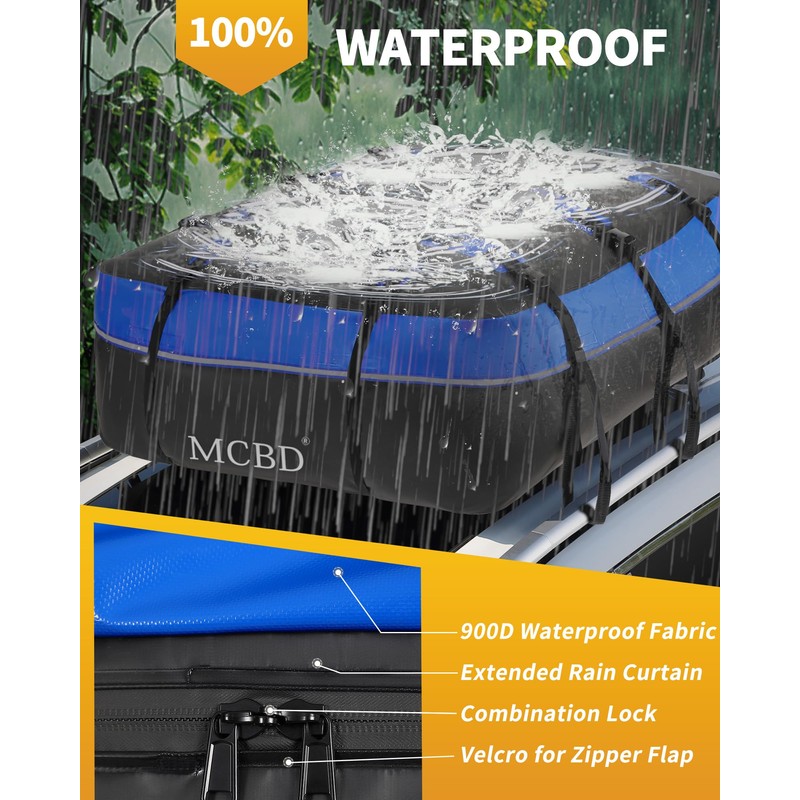 MCBD Rooftop Cargo Carrier Bag, 15 Cubic Feet Waterproof Soft-Shell Car Roof Bag for All Vehicles SUV with/Without Rack, Car Top Luggage Storage Bag