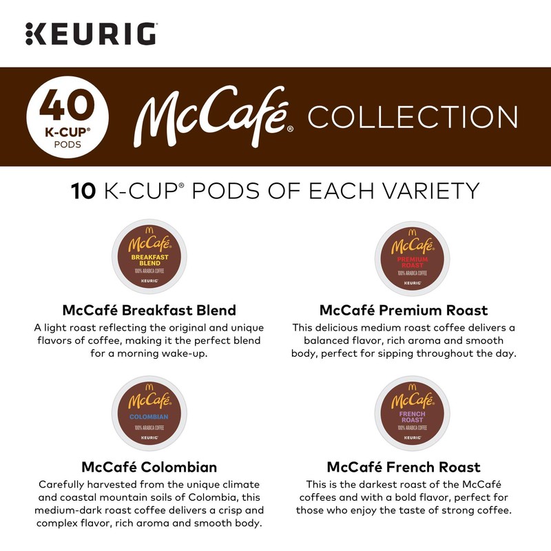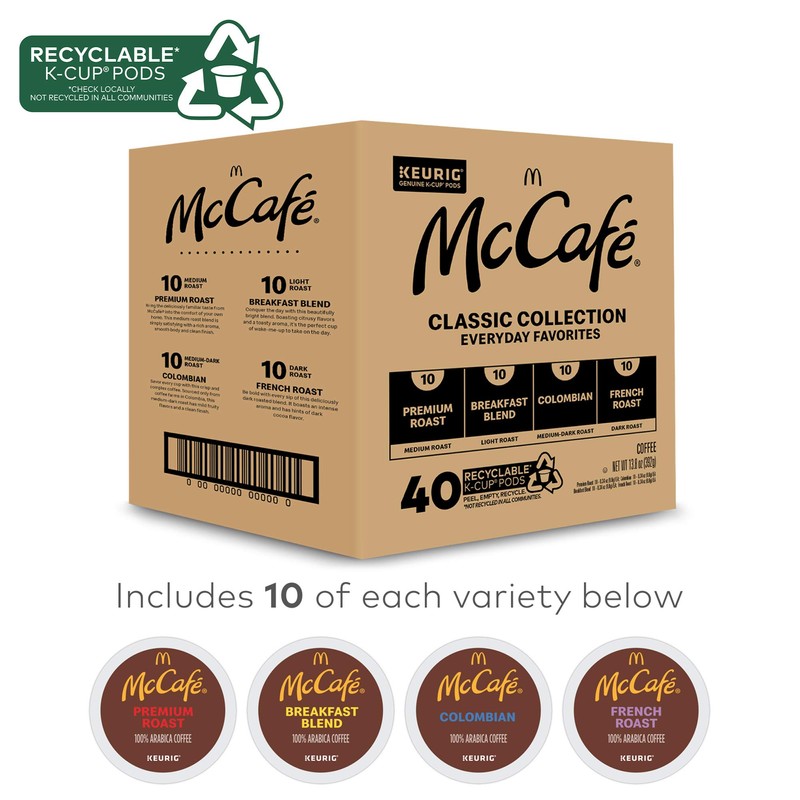 McCafé Classic Collection, Single-Serve Coffee Keurig K-Cup Pods, Classic Collection Variety Pack, 40 Count