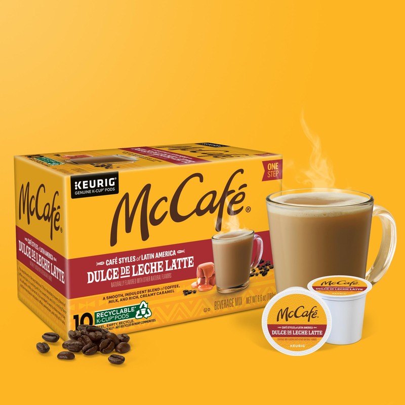 McCafé Dulce de Leche Latte, One Step Latte Single Serve Keurig K-Cup Pods, Flavored Coffee, 60-Count Box (6 Packs of 10)