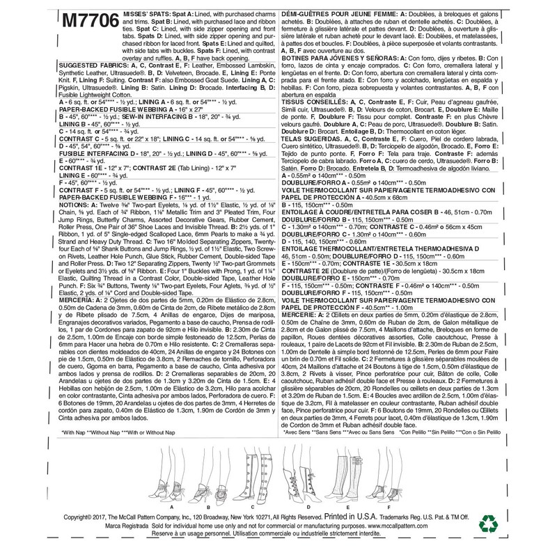 McCall's Pattern M7706 Misses' Spats by Kathryn Brenne SEWING PATTERN, One Size (7706)