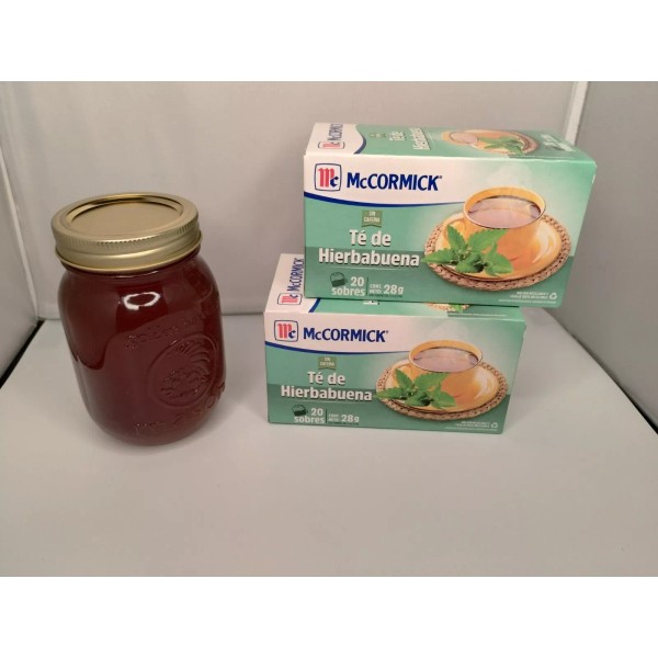McCormick 2 cajas de te de hierba buena con 20 sobres mas medio litro de miel de abeja