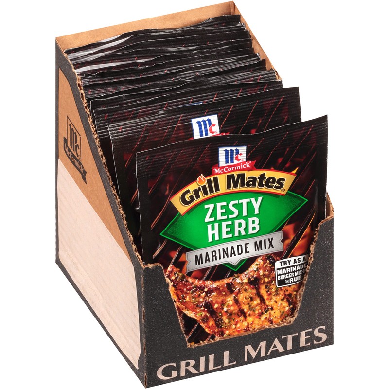 Backyard barbecues just got juicier and more delicious with McCormick Grill Mates Zesty Herb Marinade. This versatile seasoning features a blend of all natural herbs and spices like garlic, basil, oregano and red bell peppers that will keep your guests coming back for more! Simply combine one marinade packet with 1/3 cup water, 3 tablespoons white vinegar and vegetable oil with 2 pounds of pork chips, chicken or beef, marinate, grill and enjoy a memorable, mouthwatering meal.