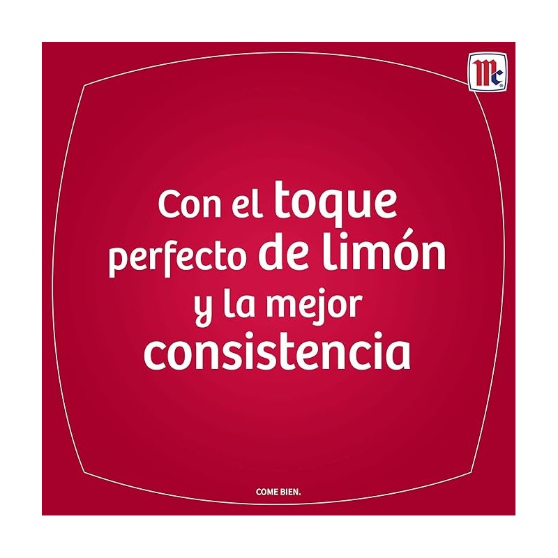 Dándole a tu familia lo que necesitas por más de 70 años, la auténtica mayonesa McCormick con jugo de limón. En su presentación de 725 gramos le dará un toque extra a tus comidas y deleitará a tu paladar. Complementa como un rico topping, ya que es el acompañante ideal para tus platillos en tus reuniones familiares o con tus amigos. Ideal para carnes, mariscos o verduras, disfruta de un sabor tradicional con un toquecito de limón, ¡Póngale los sabroso! A cada bocado con la mayonesa McCormick adicionada con omega 3 y vitamina E.