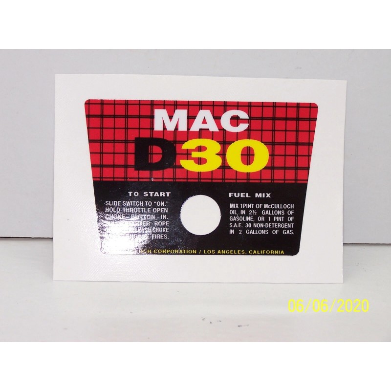 McCulloch Mac D30 Decal