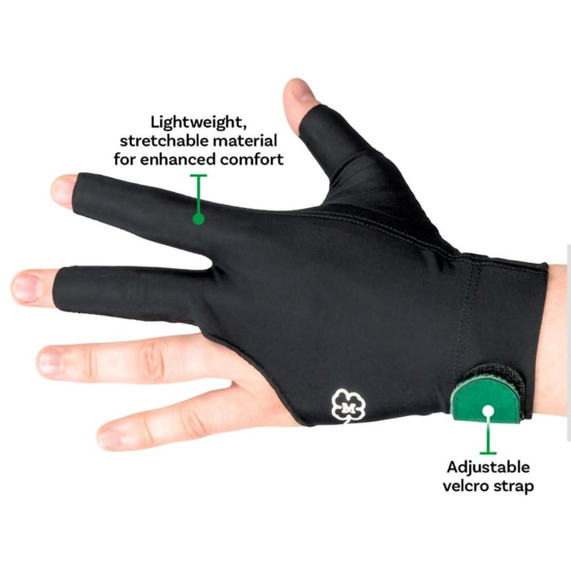 - McDermott Billiard Glove provides a smooth and consistent stroke by reducing friction between your hand and the shaft. Fits on LEFT hand – for Right-handed players. World-famous brand. Lightweight, stretchable material for enhanced comfort