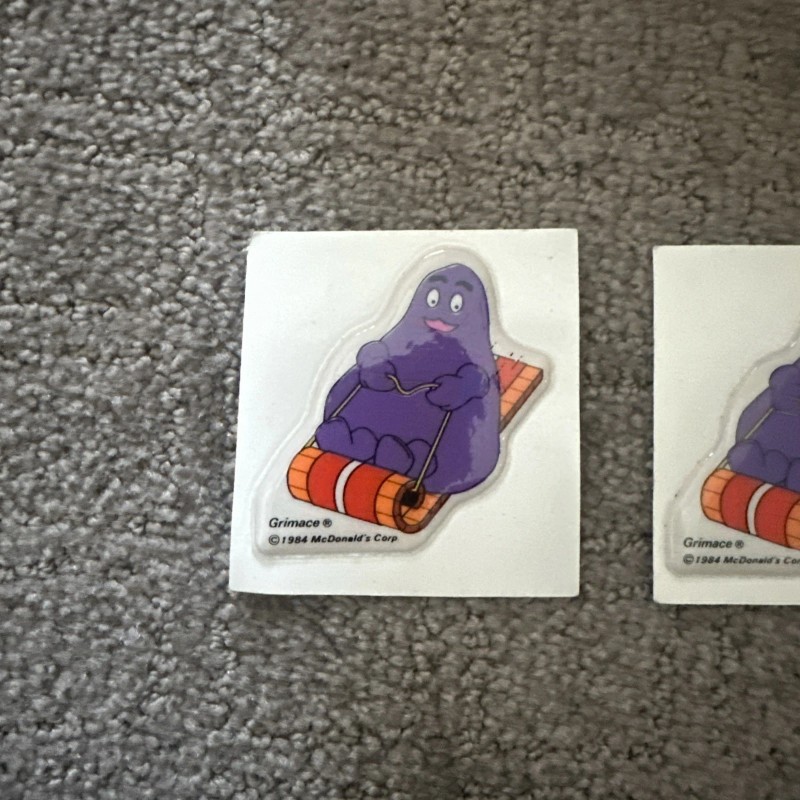 McDonald's McDonalds Vintage Grimace Puffy Sticker 1984 Sled Rare Pair (2)