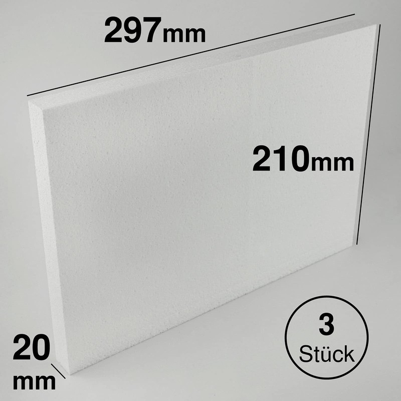 MCE-Commerce Polystyrene Sheets Rectangular 210 x 297 x 20 mm Pack of 3 for Crafts, Model Making, Creative Projects, Styrofoam, White, A4 21x29,7x2 cm