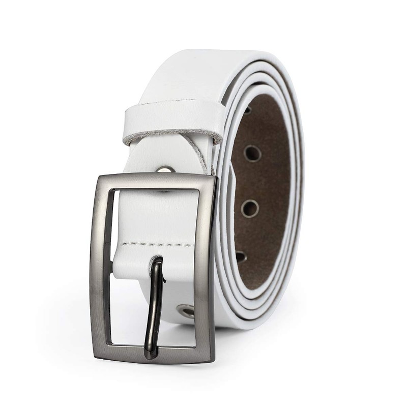 McFanBe Leather Belt for Women Girls Waist Belt Alloy Buckle 1.1 Inches Width Adjustable (B:White, S(Fit waist size 30"-33"))