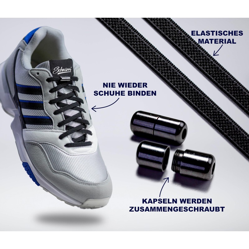 - OPTIMAL ADJUSTMENT: With 2 pairs of elastic flat laces and 2 metallic capsules per pack, our shoelaces adapt to any shoe type - from running shoes to sneakers to children's shoes. The elasticity ensures a perfect fit without pressure points.